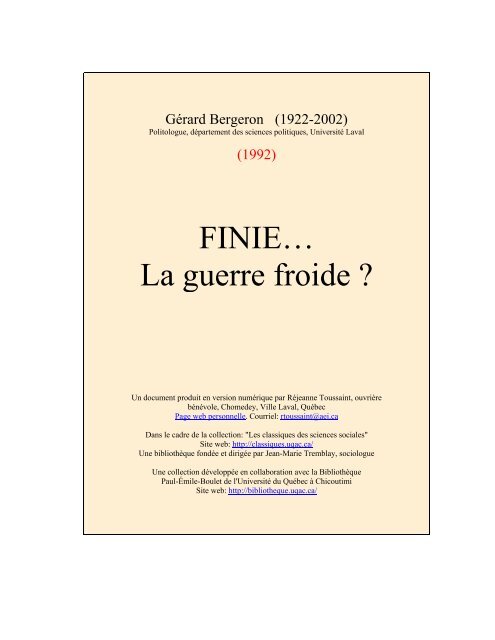 Finie La Guerre Froide Les Classiques Des Sciences Sociales